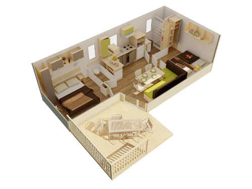 - Das Mobilheim Pacifique verbindet wunderbar den Innenbereich mit Aussen